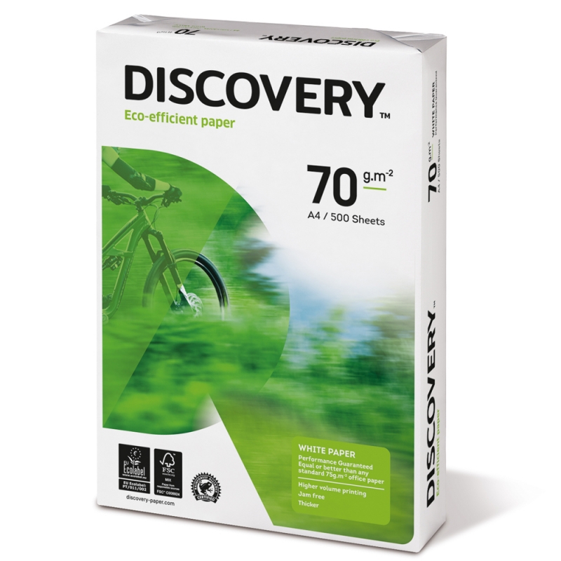 Уменьшенная плотность бумаги Discovery помогает достичь более высокой степени экологичности и сэкономить при ее производстве до 23% древесины, 20% воды и 28% энергии. Бумага сертифицирована в соответствии с FSC (производство из древесины восстанавливаемых лесов) и PEFC (использование только сертифицированной древесины).
